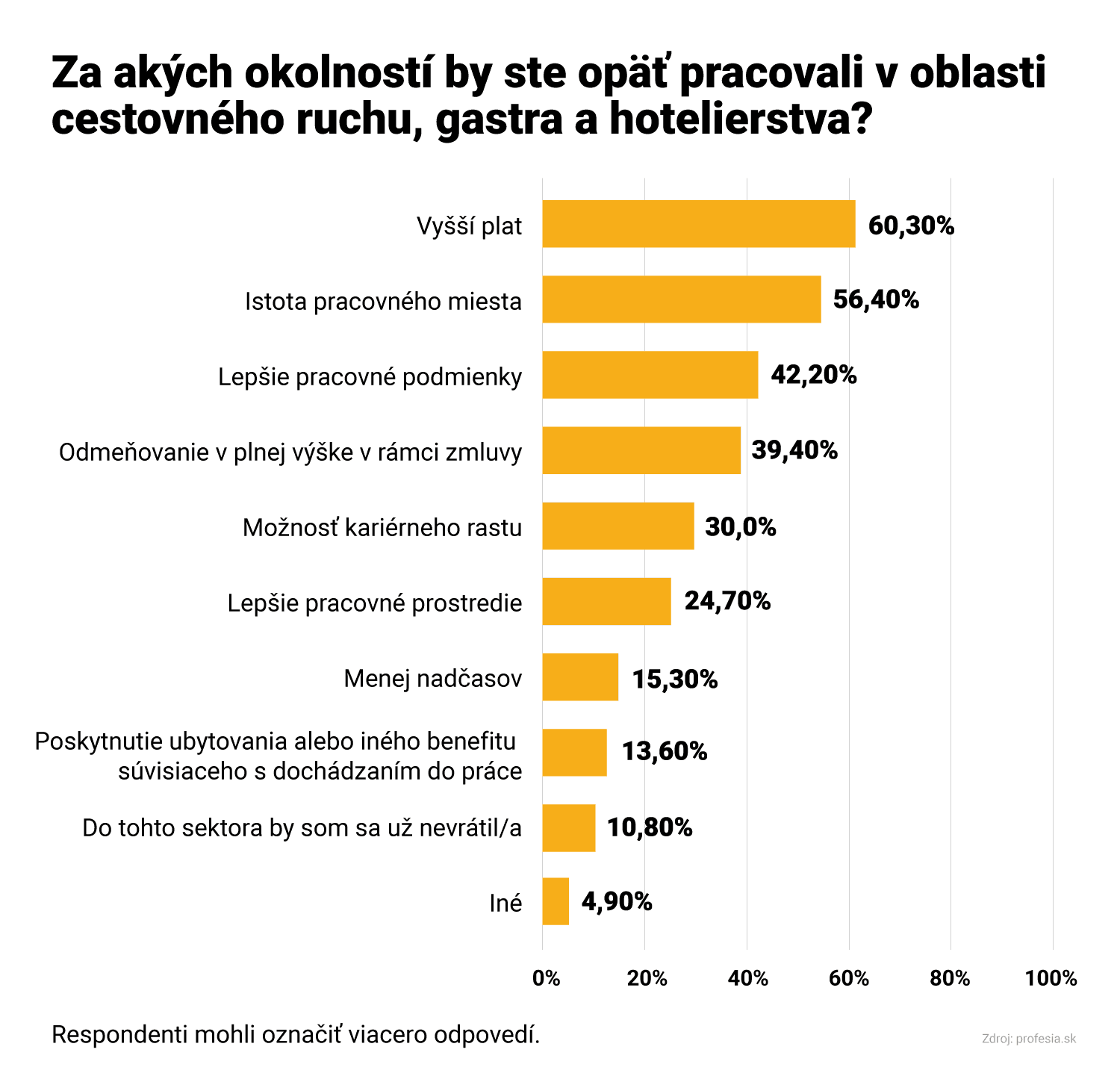 Vyšší plat a istota pracovného miesta. Tieto dve veci by dokázali motivovať k návratu väčšinu bývalých zamestnancov cestovného ruchu, gastra a hotelierstva.