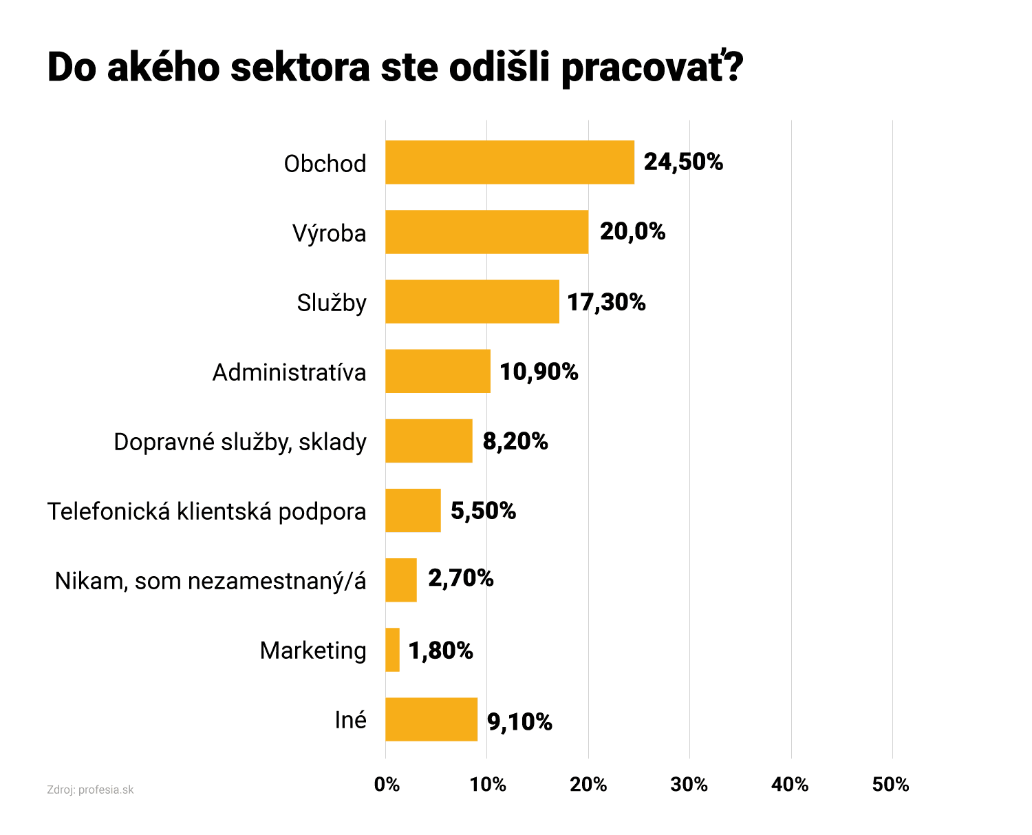 Takmer polovica bývalého personálu, ktorý dnes pracuje inde, našla svoje uplatnenie v obchode a vo výrobe.
