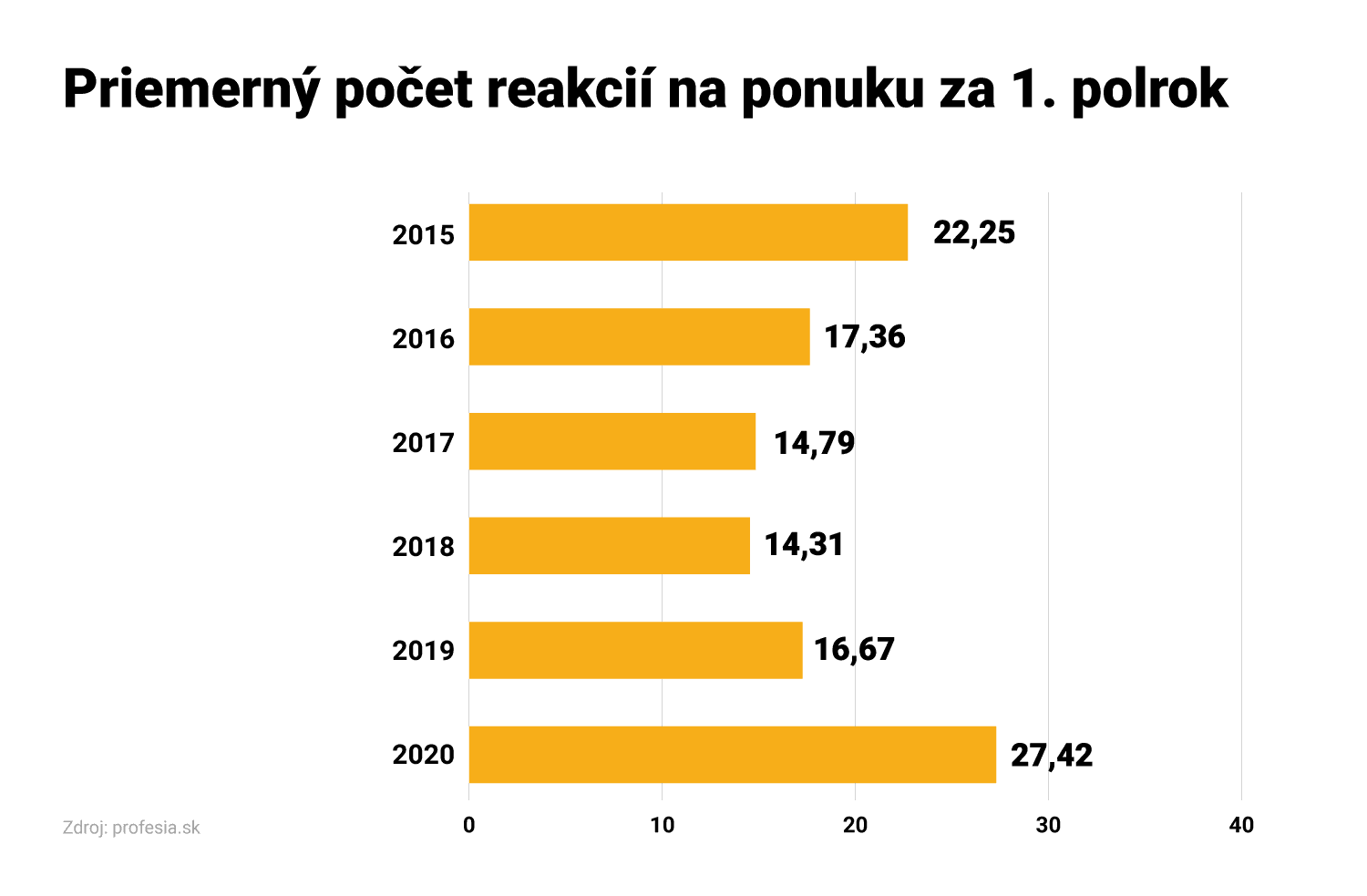 Na jeden inzerát na Profesia.sk zareagovalo počas prvého polroka 2020 viac ako 27 uchádzačov. Aktuálne čísla reagujúcich ľudí sú najvyššie za posledných šesť rokov.