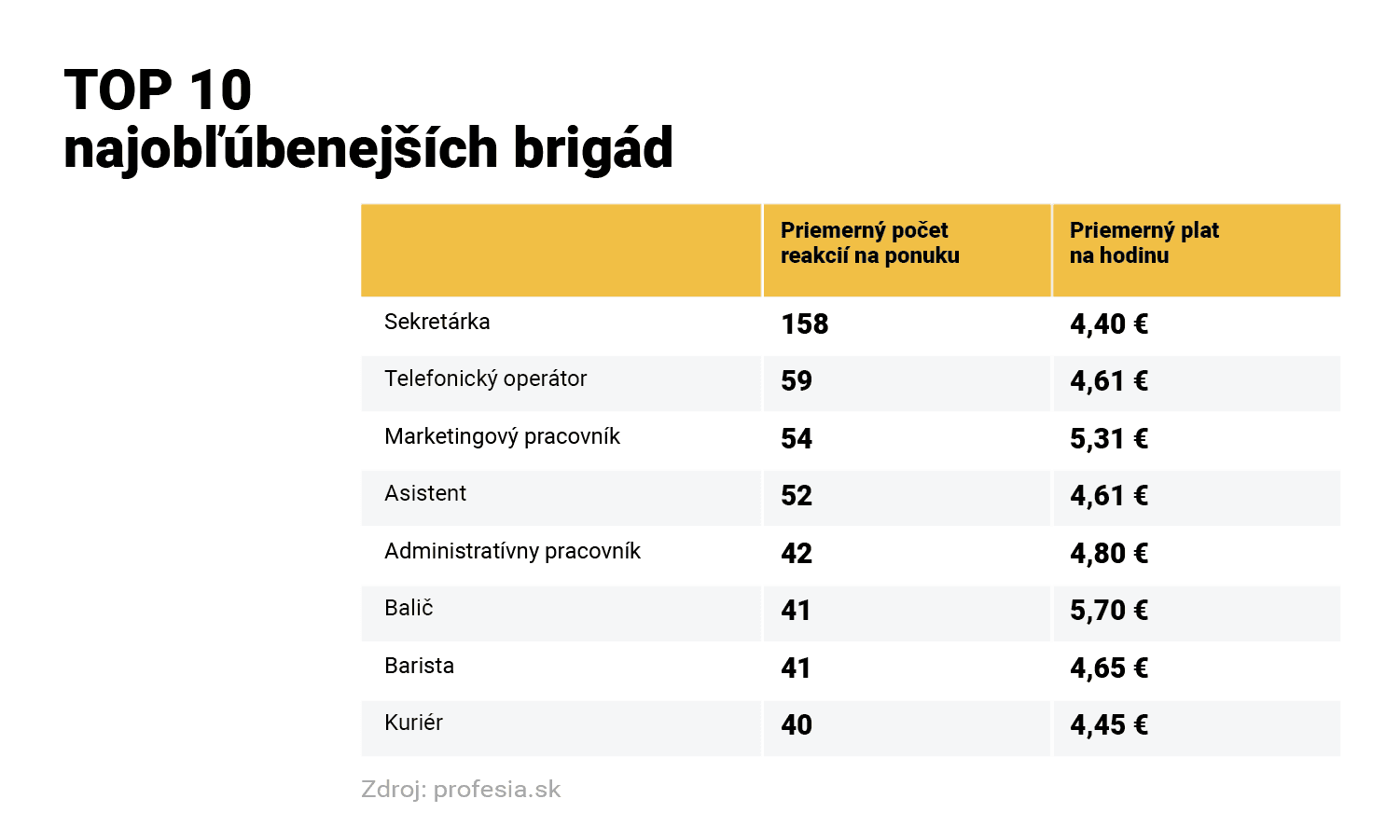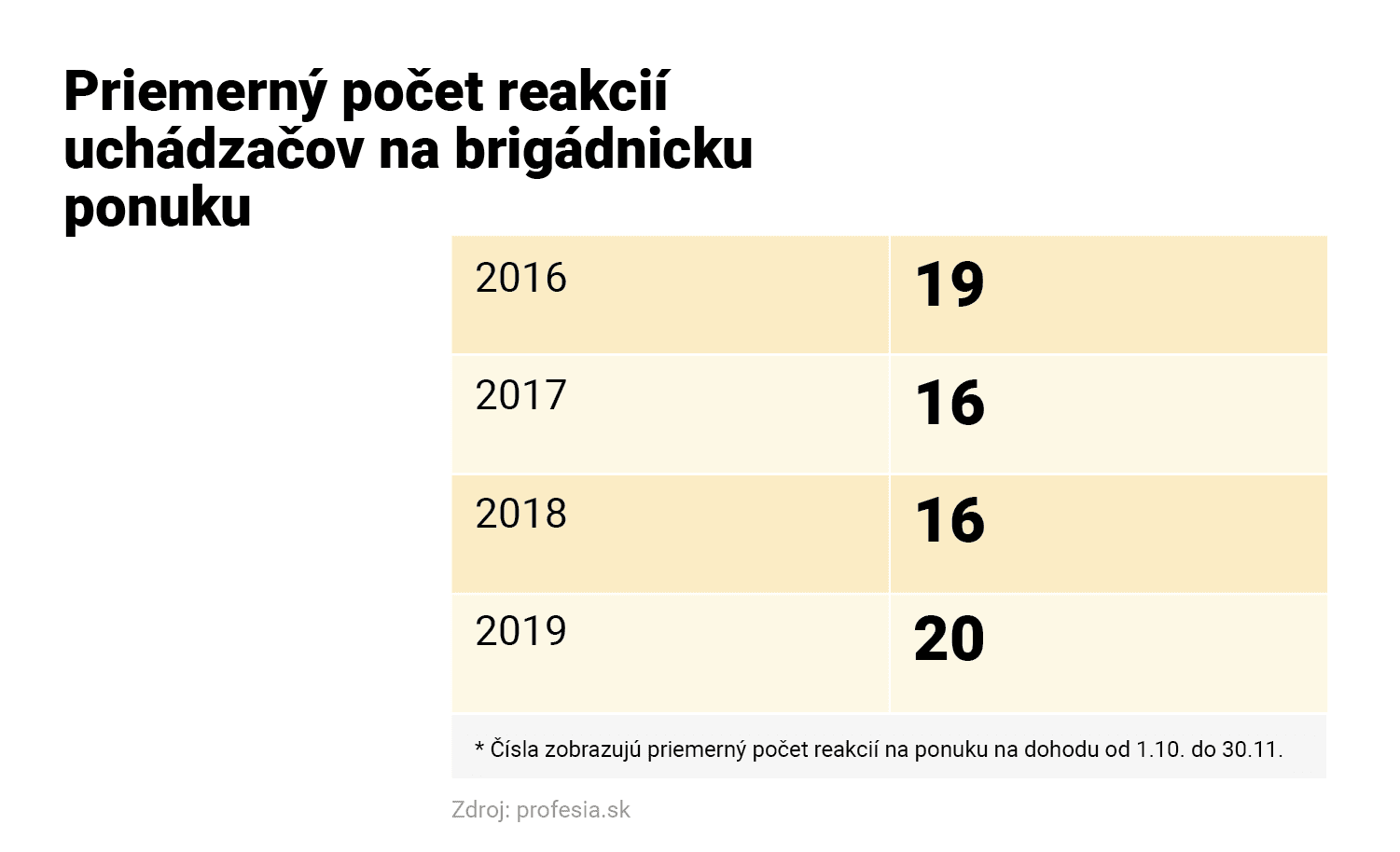 Zamestnávateľov môže tešiť, že oproti minulému roku narástol záujem uchádzačov. Aktuálne platí, že na jednu brigádnickú ponuku zareaguje v priemere 20 uchádzačov.