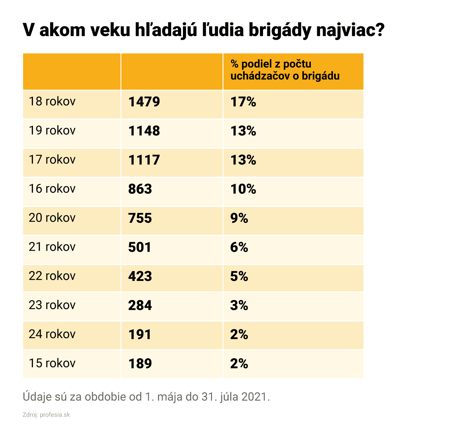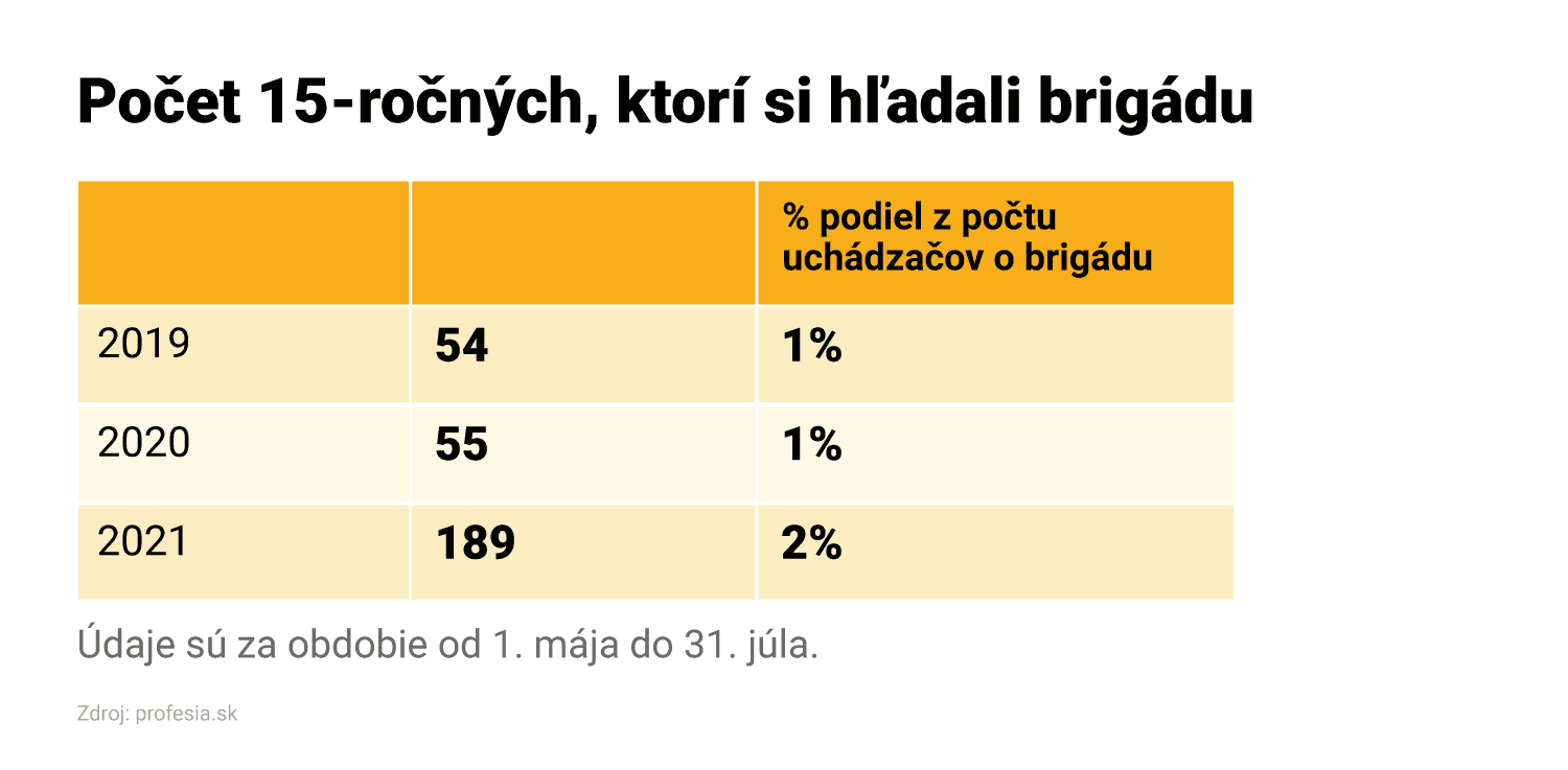 Napriek tomu, že počet 15-ročných výrazne narástol, z celkového počtu uchádzačov o brigádu tvoria aktuálne zhruba dve percentá. V rebríčku kandidátov so záujmom o brigádu im dnes patrí desiata priečka.