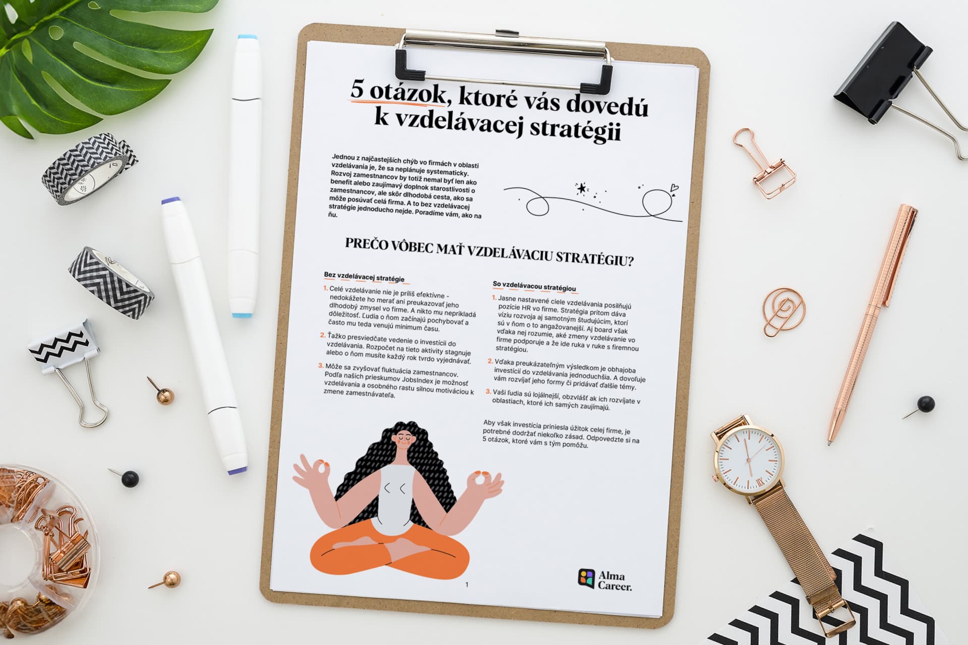 Aby sme vám to pomohli nastaviť vo vašej firme, pripravili sme jednoduché PDF, ktoré vás pomocou praktických otázok a príkladov navedie na správnu cestu, ako takú stratégiu vytvoriť.