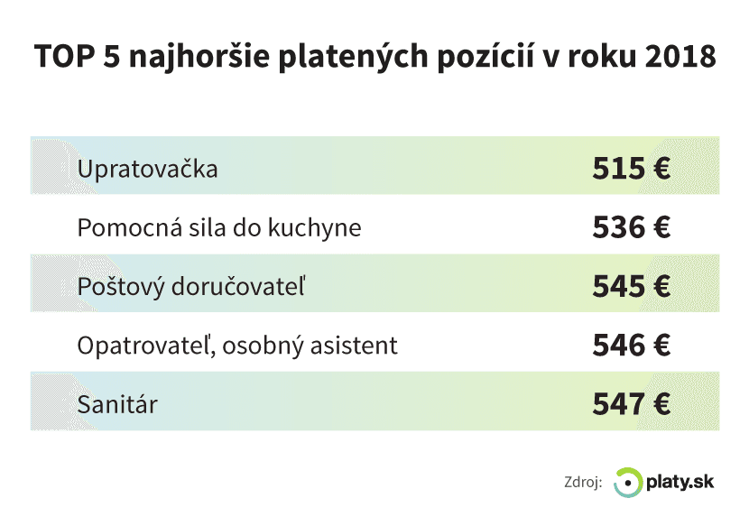 V kategórii najhoršie platených pozícií skončila ešte pomocná sila do kuchyne, poštový doručovateľ, opatrovateľ a osobný asistent či sanitár.