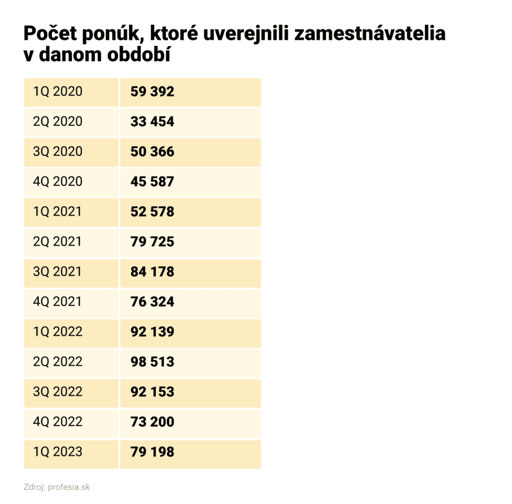 Výnimkou bol doteraz len pandemický rok 2020, ktorý ovplyvnili opatrenia a druhý štvrťrok priniesol menej pracovných príležitostí ako ten prvý.