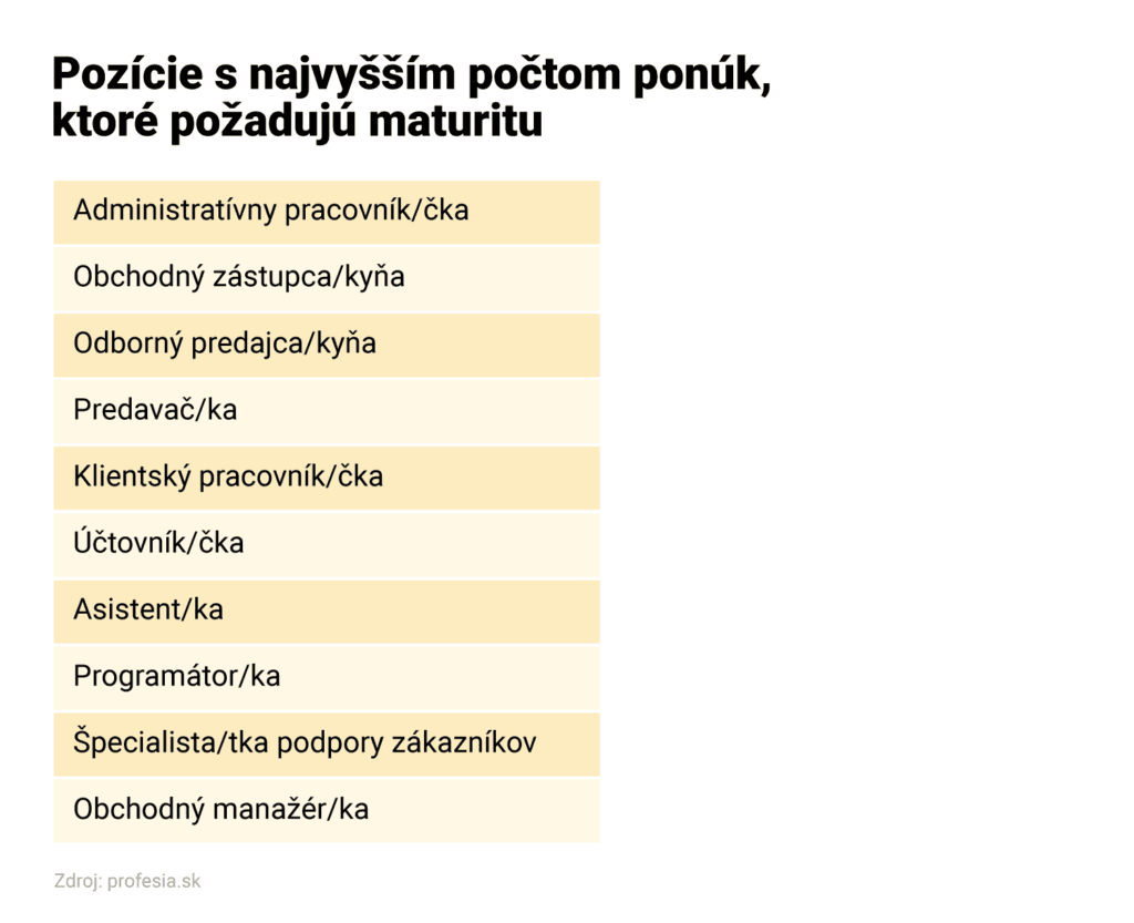 Iné pracovné príležitosti vidíme v ponukách, ktoré vyžadujú maturitu. V takomto prípade uverejňovali firmy najviac inzerátov v obchode, administratíve, ekonomike a účtovníctve a v informačných technológiách.