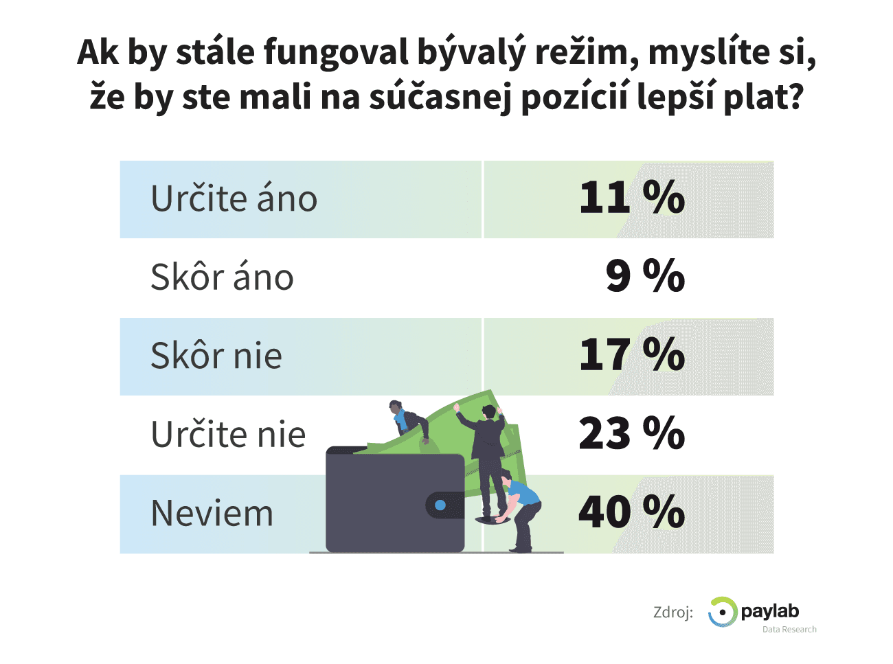 Kým veľká časť Slovákov vníma ceny za socializmu pozitívne, už horšie skončil pohľad na vtedajšie zárobky. Iba pätina respondentov si myslí, že by pri pretrvaní starého režimu mala na rovnakej pozícii lepší plat, ako má dnes.