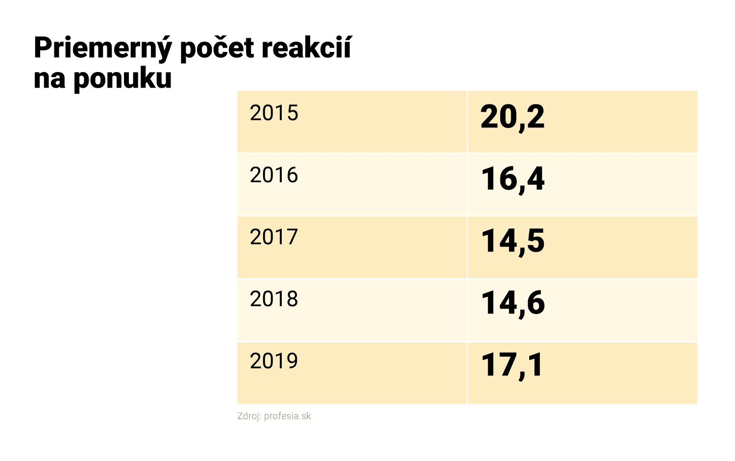 Priemerný počet reakcií na ponuku bol dokonca vyšší aj ako v roku 2016, kedy bolo na Profesia.sk menej ponúk ako dnes.