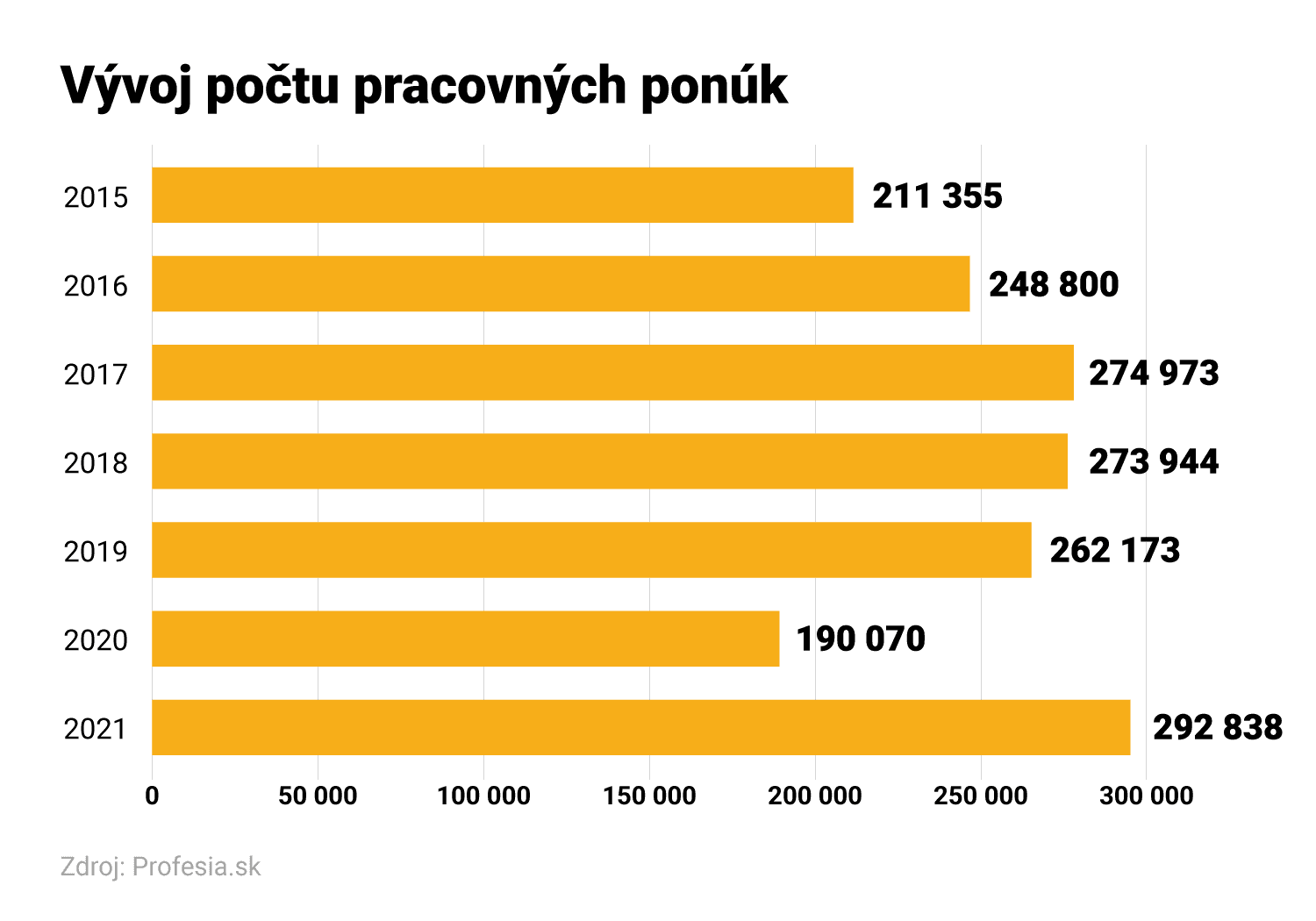 Viac ako 100-tisíc. Taký je rozdiel v počte ponúk na portáli Profesia.sk medzi rokom 2020 a 2021.