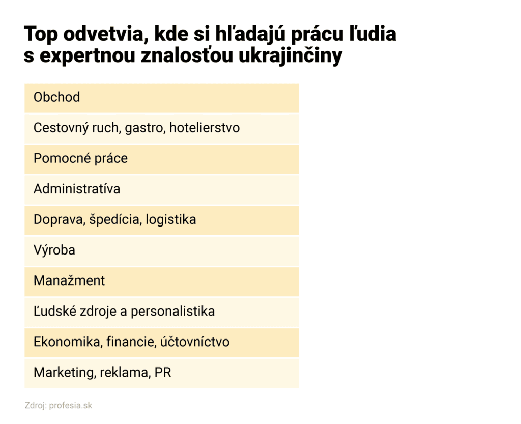Obchod, cestovný ruch, gastro či pomocné práce. Práve toto sú pracovné oblasti, o ktoré sa ľudia z Ukrajiny zaujímali najviac.