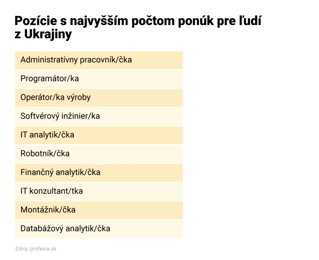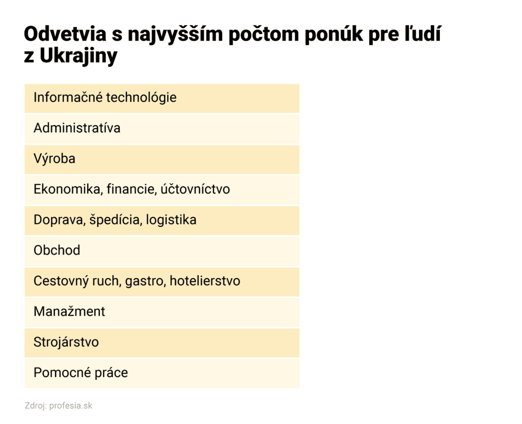 Ponuky práce, pri ktorých svietila ukrajinská vlajka, boli najčastejšie v oblastiach IT, administratíva, výroba či ekonomika a financie.