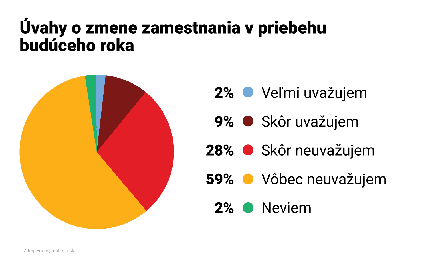 Naopak, až 87 percent potvrdzuje, že zmenu práce nemá v pláne ani v roku 2021.