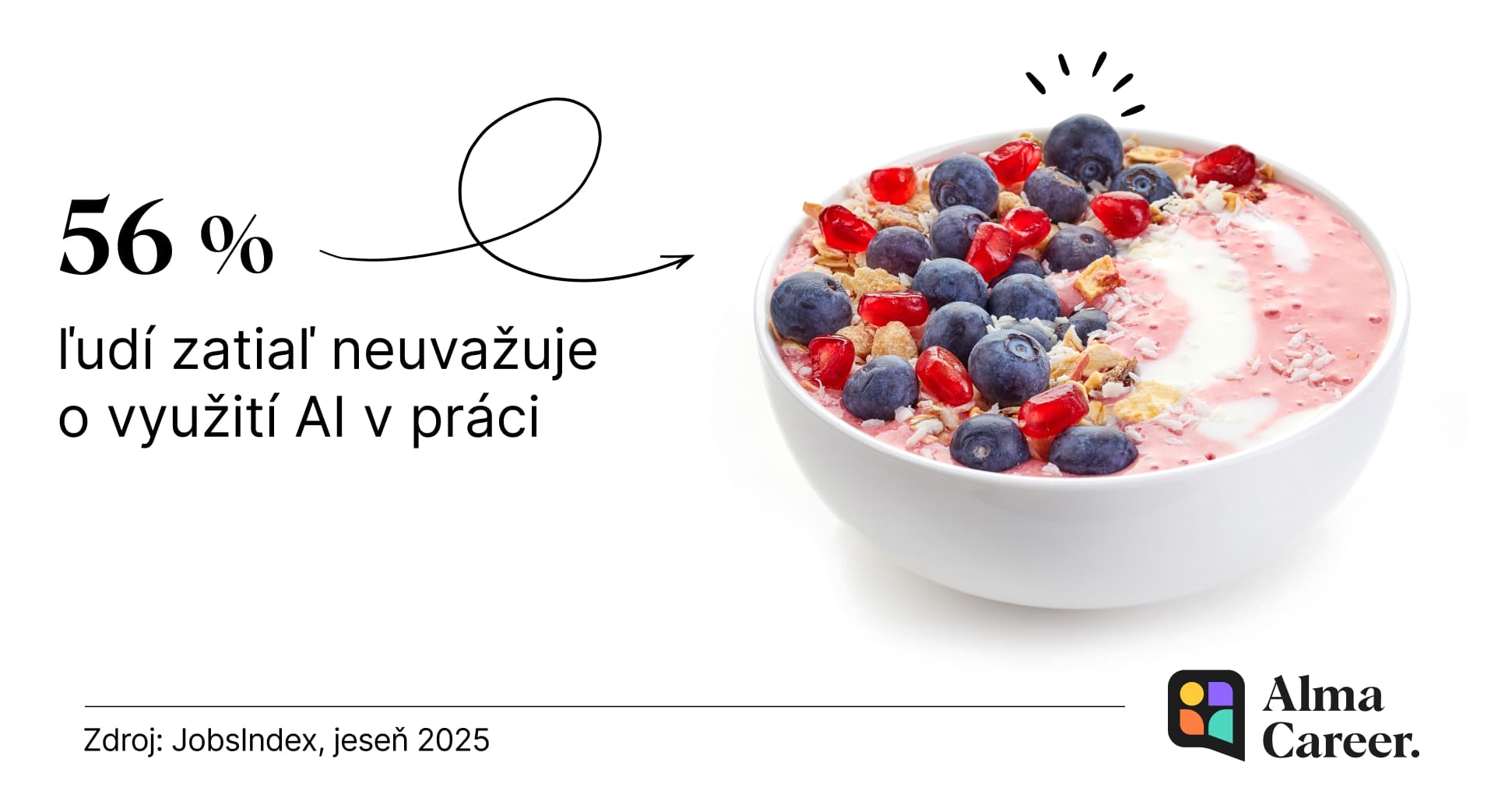 Z nich sa môžeme dozvedieť, že aktuálne na Slovensku generatívnu AI využíva pri práci 27 % zamestnancov – 7% pravidelne a 20 % občasne. Ďalších 18 % ju síce zatiaľ nevyužíva, ale jej využívanie zvažuje, a zostávajúcich skoro 56 % ju nevyužíva ani nezvažuje využívať.