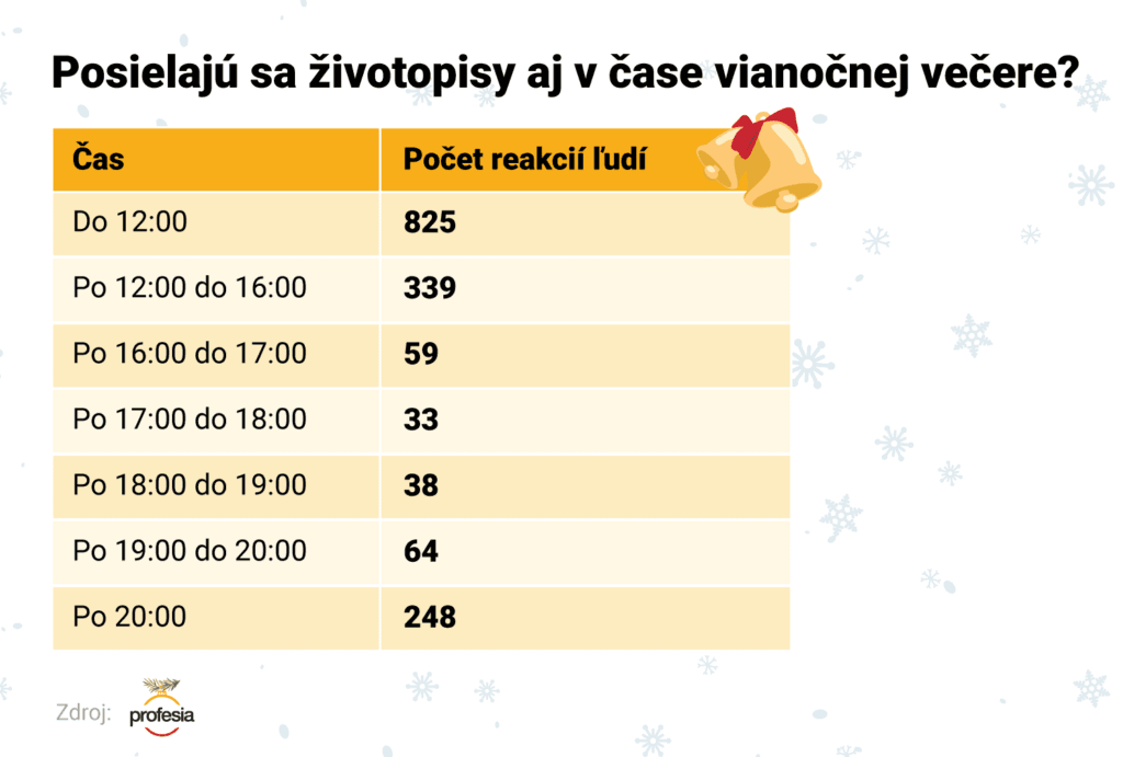 Hľadajú si ľudia v Štedrý deň prácu skôr pred alebo po večeri? Analýza najväčšieho pracovného portálu odhaľuje, že väčšina Slovákov a Sloveniek poslala svoj životopis ešte pred obvyklým časom podávania vianočnej kapustnice či kapra. Do štvrtej poobede tak stihlo spraviť 1164 zo spomínaných 1606 vianočných uchádzačov či uchádzačiek.