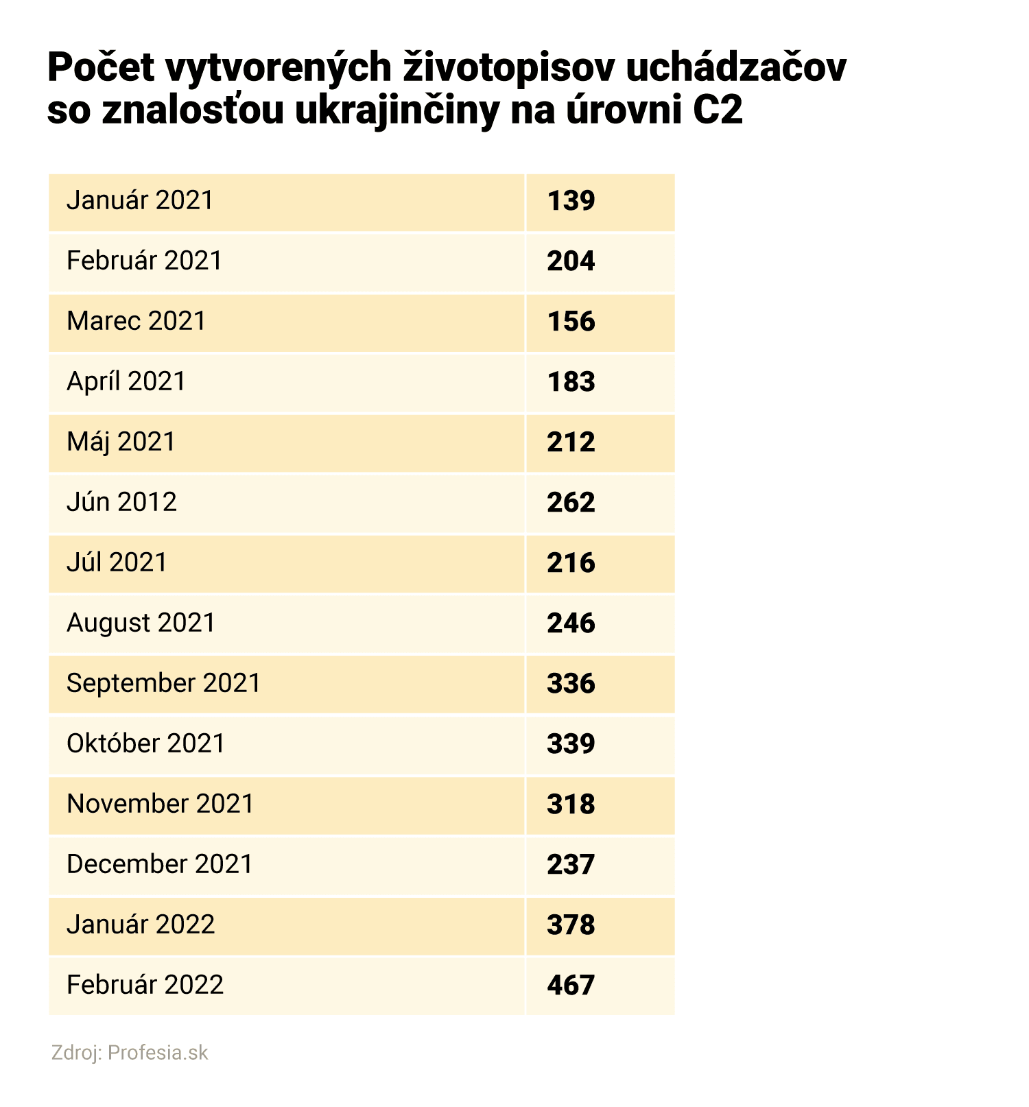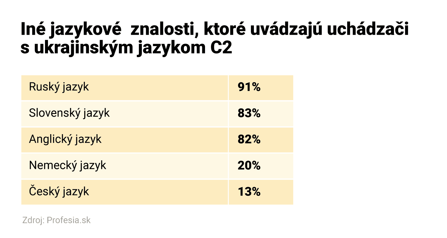 Vo februári 2022 si na najväčšom pracovnom portáli na Slovensku vytvorilo životopis takmer 500 uchádzačov so znalosťou ukrajinčiny na úrovni C2. Túto úroveň možno prirovnať k materinskému jazyku. Oproti rovnakému obdobiu spred roka je to nárast o zhruba 130 percent.