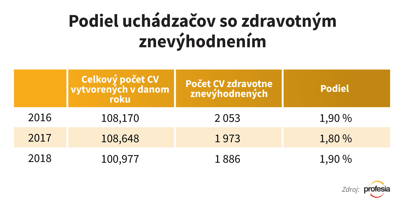Z uchádzačov o prácu, ktorí si v roku 2018 vytvorili životopis na pracovnom portáli Profesia.sk, boli takmer dve percentá so zdravotným znevýhodnením.