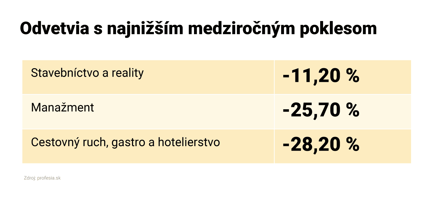Napriek tomu, že v medziročnom porovnaní eviduje Profesia pokles pri všetkých sektoroch, nájdu sa aj pozície, kde je aktuálne viac pracovných ponúk ako tomu bolo pred rokom.