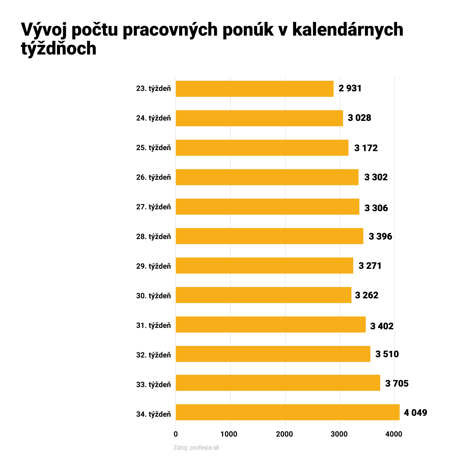 Obdobie od 17. do 23. augusta prinieslo na Profesia.sk 4 049 pracovných ponúk. Počet nových inzerátov nad 4-tisíc zaznamenal portál naposledy v 11. kalendárnom týždni, teda v období od 9. do 15. marca.