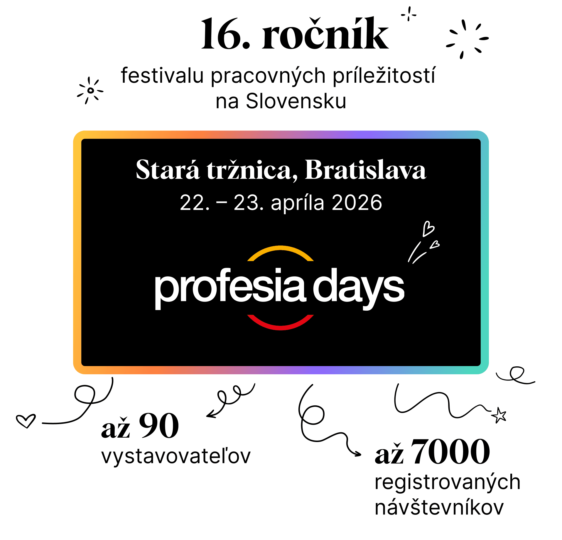 Ak aktívne naberáte, chcete posilniť dôveru vo vašu značku a byť vnímaný ako atraktívny zamestnávateľ, partnerstvo na Profesia days nie je len doplnok marketingu. Je to váš jasný signál pracovnému trhu a odkaz: Chceme byť tam, kde sa rozhoduje o jeho smerovaní.