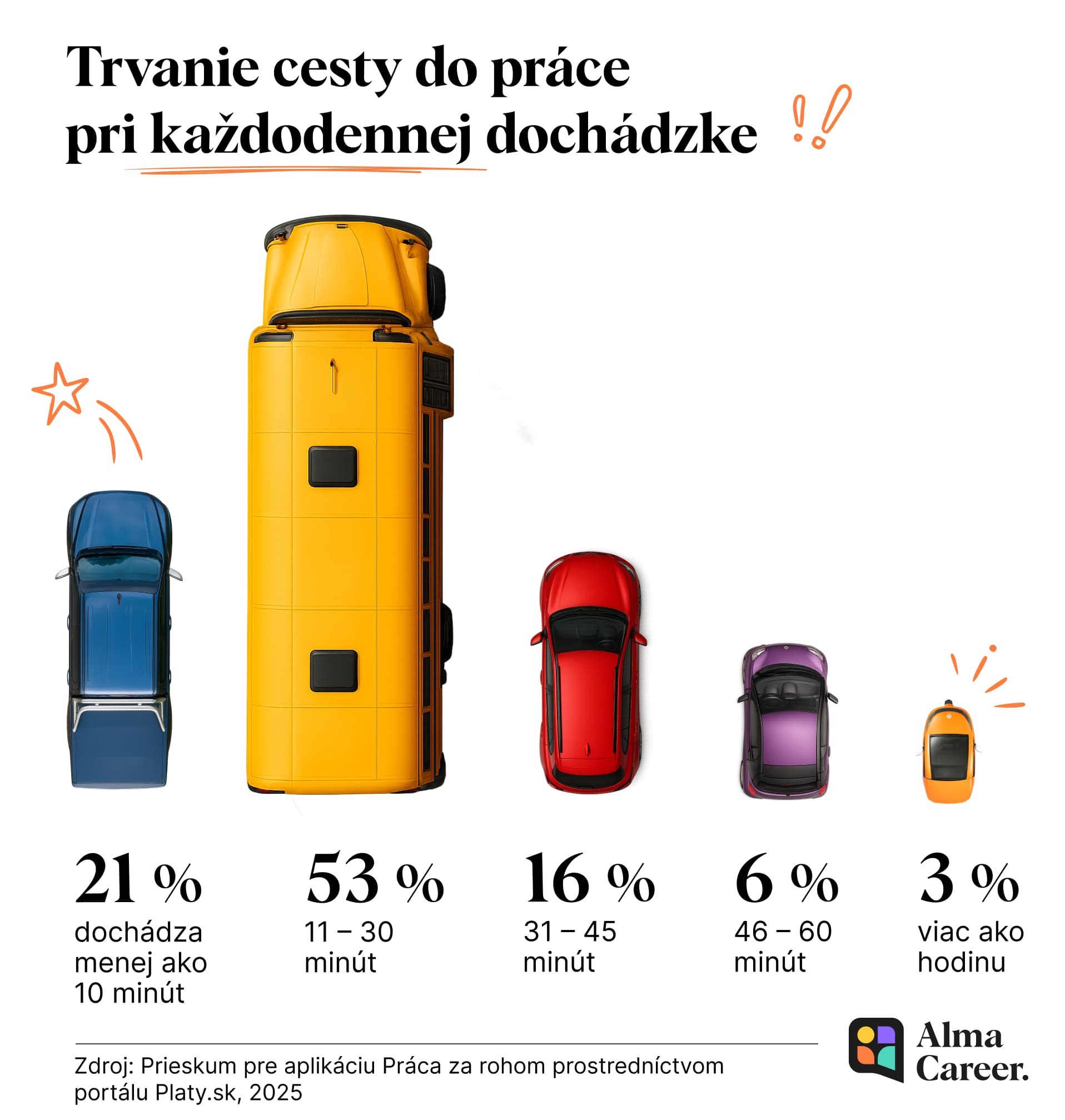 S dochádzaním totiž súvisia aj nemalé finančné náklady a stratený čas, ktorý by Slováci mohli využiť na kvalitnejší osobný život a rovnováhu medzi prácou a voľnom. Podľa prieskumu pre aplikáciu Práca za rohom: