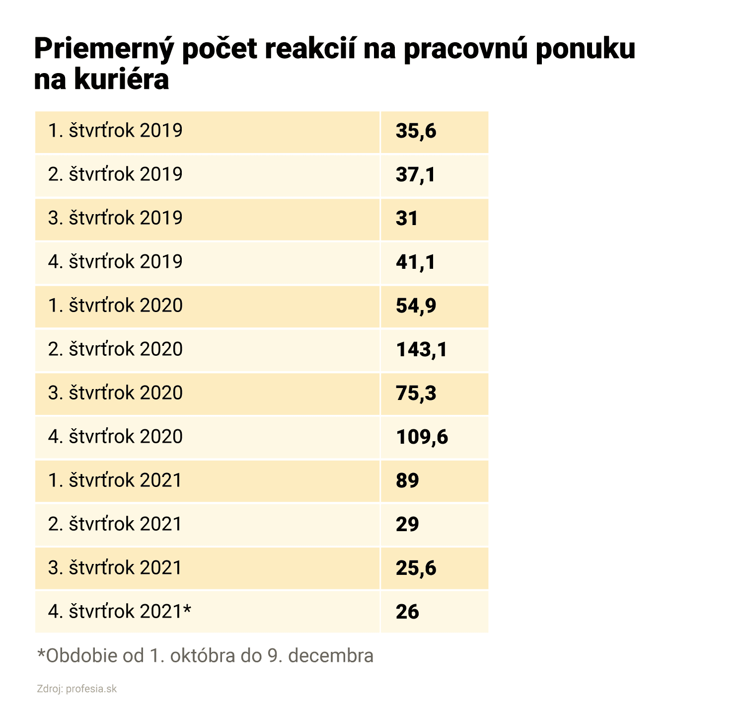 Aktuálne platí, že na jednu pracovnú kuriérsku ponuku zareaguje v priemere 26 ľudí.