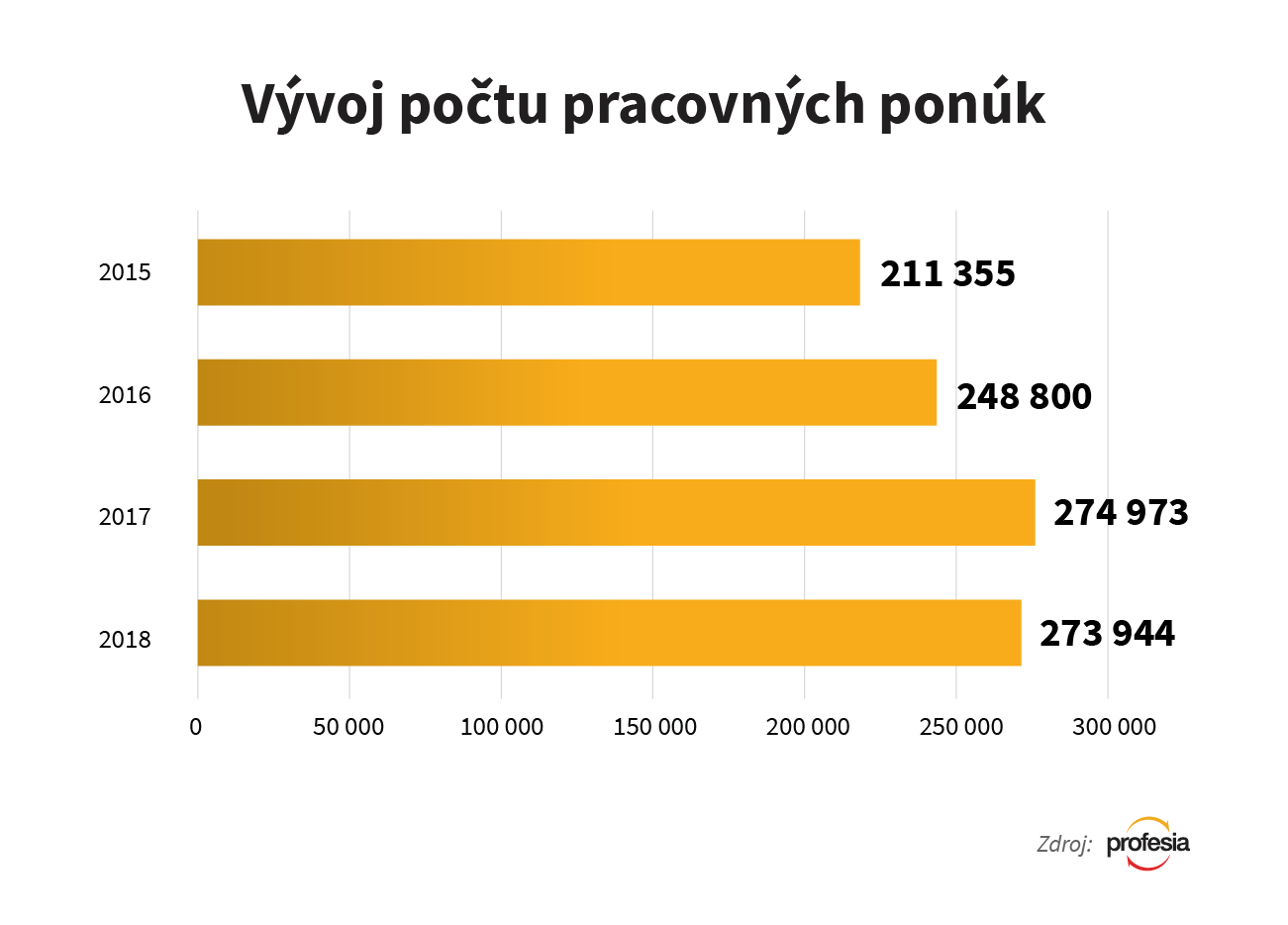 Rok 2017 priniesol počet ponúk, ktorý je doteraz najvyšší vo viac ako 21-ročnej histórii firmy. Rekord zostáva nezmenený aj po skončení roka 2018. Po veľmi dlhom čase musíme usúdiť, že počet pracovných ponúk medziročne nerástol.