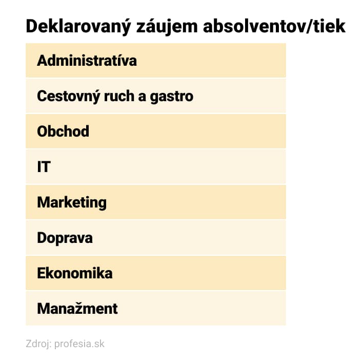 Veľký záujem o prácu je aj od študentiek a študentov vysokých škôl v košickom regióne. Na Profesia.sk má aktívny životopis najviac spomedzi všetkých krajov a na inzeráty od nich prichádzajú stovky reakcií. Takmer 400-krát reagovali na ponuky pre administratívnych pracovníkov a pracovníčky, necelých 350 reakcií od nich prišlo, keď spoločnosti hľadali asistentov a asistentky. Veľmi často tiež reagujú na ponuky pomocných pracovníkov, predavačiek či účtovníčok a konštruktérov.