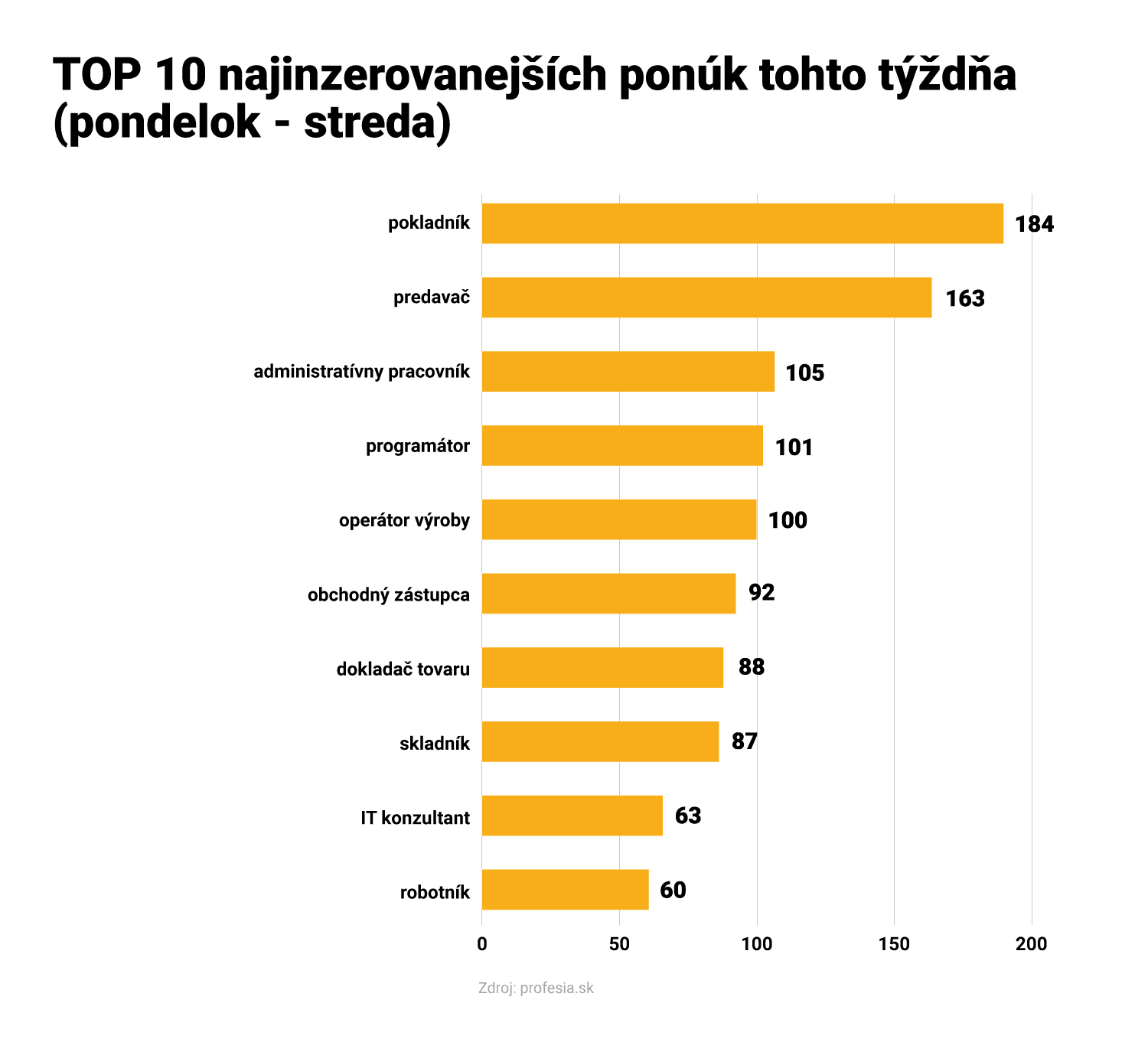 4 426. Toľko pracovných ponúk pridali zamestnávatelia na najväčší pracovný portál Profesia.sk minulý týždeň. Oproti predošlému týždňu ide o pokles o približne 800 inzerátov. V porovnaní s týždňom od 24. februára do 1. marca však môžeme vidieť, že zmena nie je až taká výrazná.