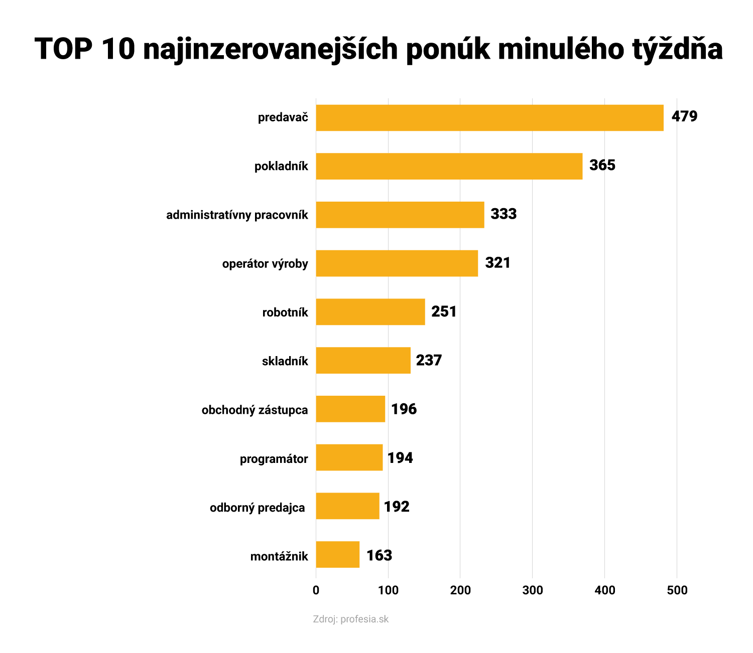 Predavač bol najinzerovanejšou pozíciou za posledné dva týždne. Minulý týždeň išlo o 479 ponúk.