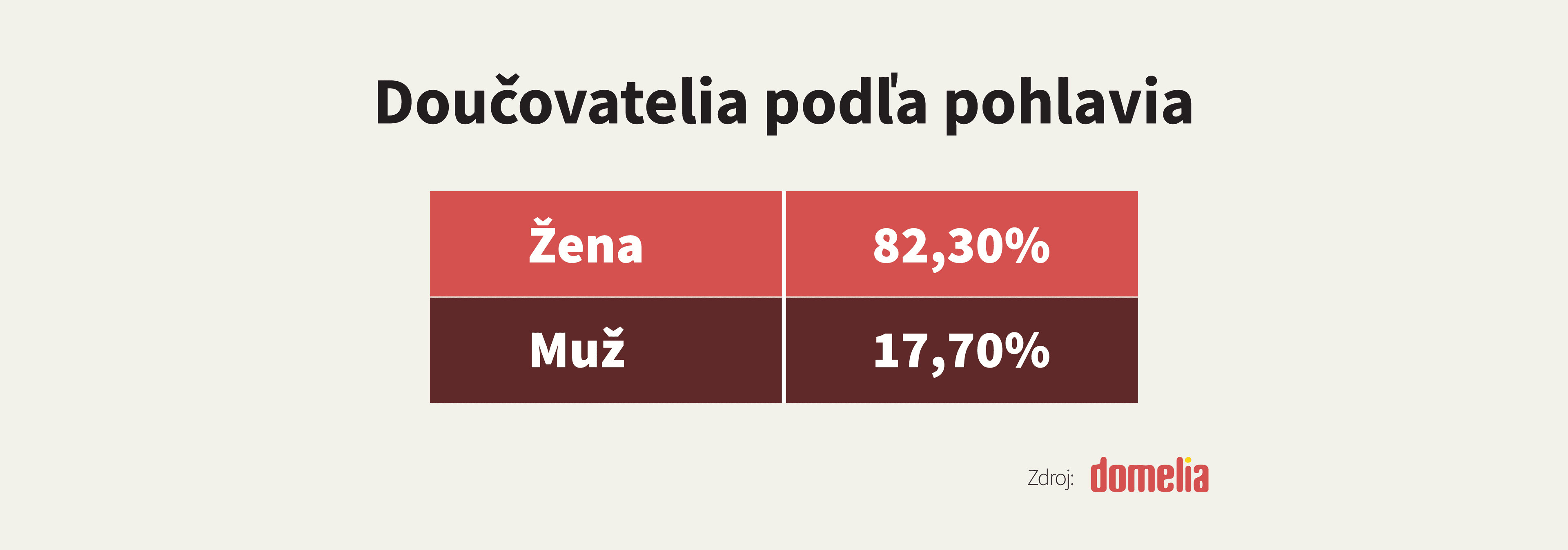 Analýza portálu Domelia.sk odhalila, že prostredníctvom doučovania si privyrábajú skôr ženy. V profiloch, ktoré ponúkajú doučovanie majú ženy viac ako 82-percentný podiel.