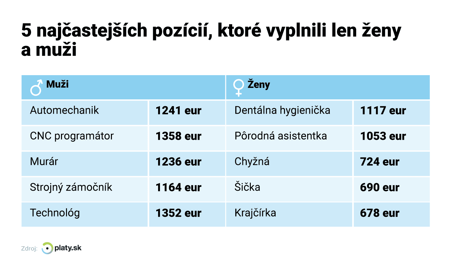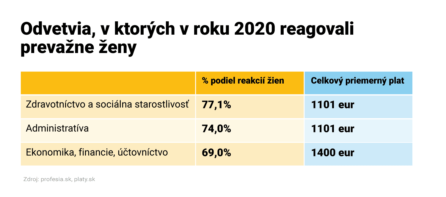 Na Slovensku dlhodobo pozorujeme, že v sektoroch, kde dominujú ženy, sú platy v priemere nižšie. Túto skutočnosť potvrdzujú aj údaje z portálu Platy.sk, na ktorom si zamestnanci porovnávajú svoj plat, aby zistili, či zarábajú adekvátne.