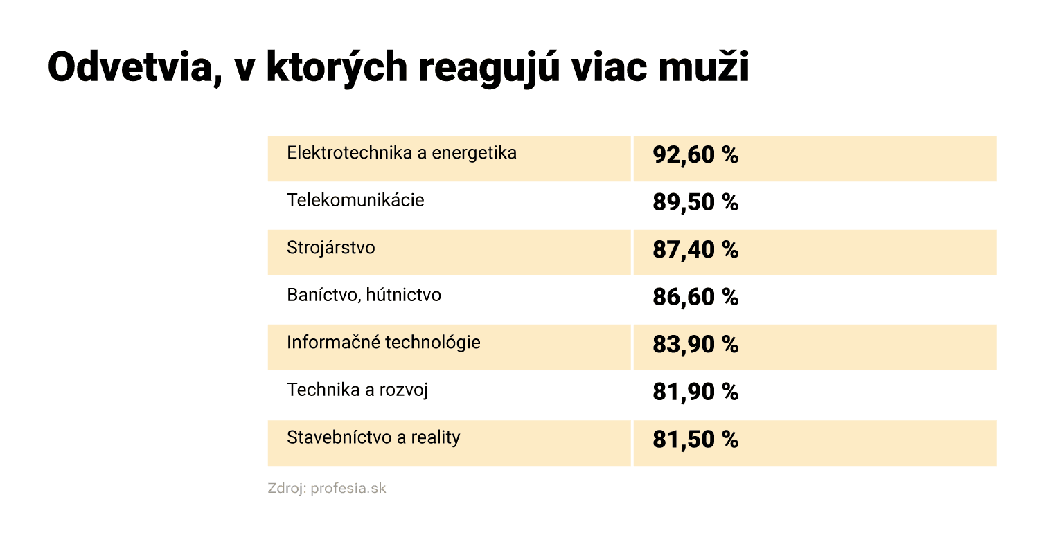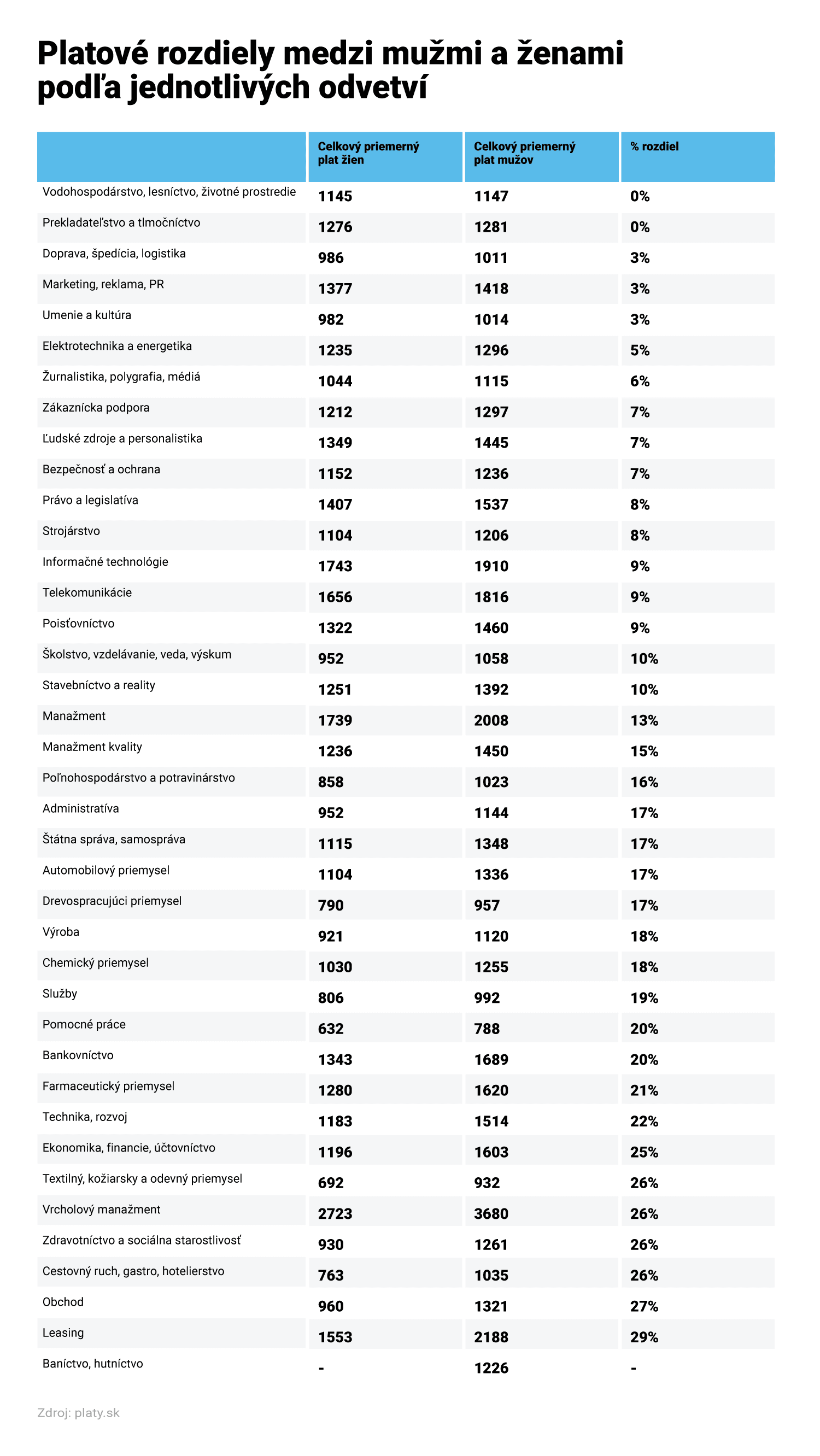 Na Slovensku sme zvyknutí na to, že v odvetviach ako sociálna práca, školstvo, kde vidíme dominovať ženy, sú nižšie platy, ako napríklad v energetike a technických smeroch, kde zase pre zmenu dominujú muži.